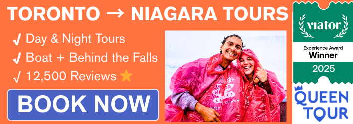 Join an intimate, small-group guided tour for the best way to experience Niagara Falls. Feel the mist up close on a Niagara City Cruises Voyage to the Falls boat tour (April–November) or visit the Butterfly Conservatory and Niagara Adventure Theatre in winter. Take in breathtaking aerial views from the Skylon Tower Observation Deck, explore cave-like tunnels at Journey Behind the Falls, and enjoy a scenic narrated driving tour featuring Dufferin Islands, Whirlpool Rapids, and the Floral Clock. With downtown Toronto hotel pickup and drop-off included, this is a must-book Niagara Falls experience!